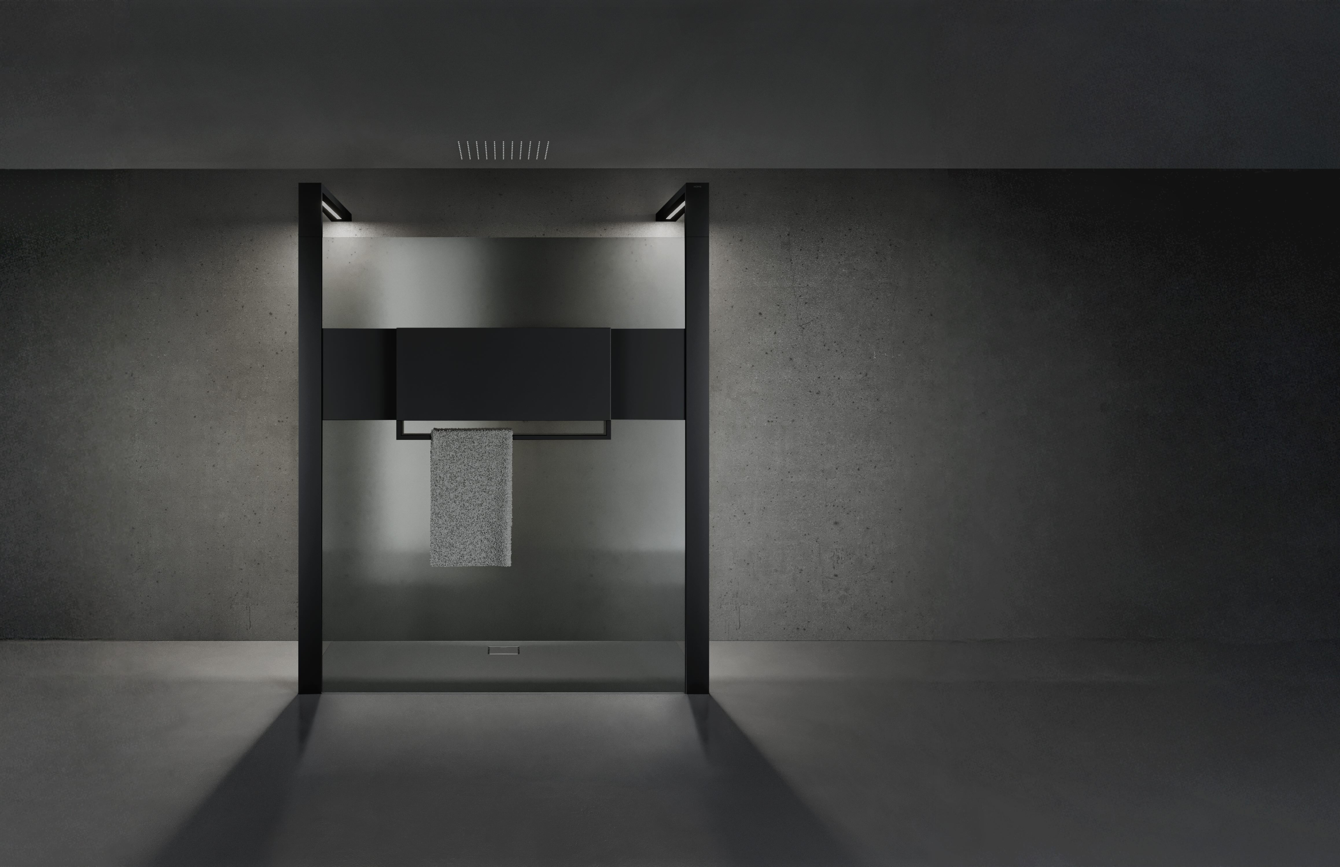 PL. Je fais notamment référence aux solutions telles que Hüppe Sphere, un système modulaire qui place l'espace douche au cœur de l'architecture de la salle de bains, le transformant en un élément d'aménagement intérieur central et intelligent. Il exploite notamment l'extérieur pour intégrer des fonctions pratiques telles que des miroirs, des porte-serviettes, des sèche-serviettes, des étagères ou des meubles.